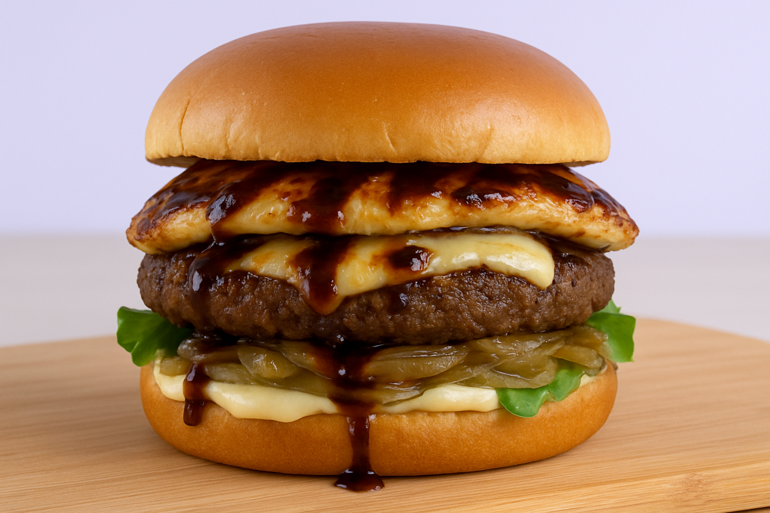 - Selar o pão Brioche com doriana, aplicar o aioli, na base do pão, colocar a alface, a cebola, o hambúrguer (grelhar por 3 minutos de cada lado e temperar com sal e pimenta), queijo coalho grelhado dos dois lados (1 minuto de cada lado) e finalizar com o melado de cana. Fechar com a coroa do pão.
